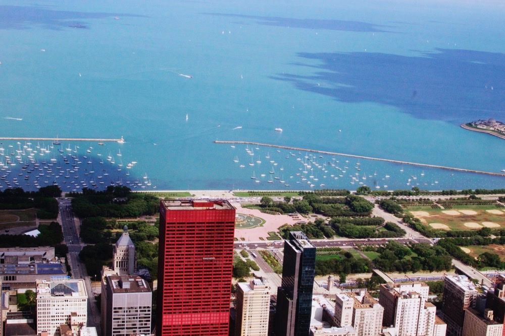 After Shedd we hopped another bus to Willis (Sears) Tower. With just a tiny bit of trepidation we took the elevator up to the Sky Deck. Great views of the city and the walk out on the Ledge glass boxes was very cool.